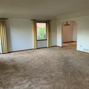 Our current home has a huge living room with amazing windows that let in gorgeous sunlight! When we moved in we immediately ripped out the old carpet, took down the dated curtains, and painted the fireplace white. We struggled to figure out how to best utilize the space including how to arrange the couches and where to put the TV (above the fireplace or on the wall was heavily debated). We ended up sort of cornering off the "living"/TV watching space and the TV ended up on the wall which we ended up really loving because now the mantel and fireplace are a focal point of the room without a big black whole above it.